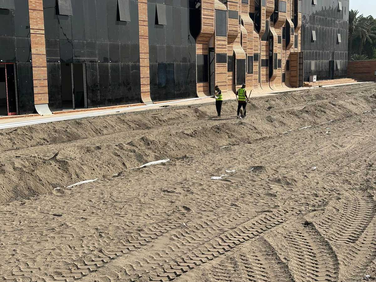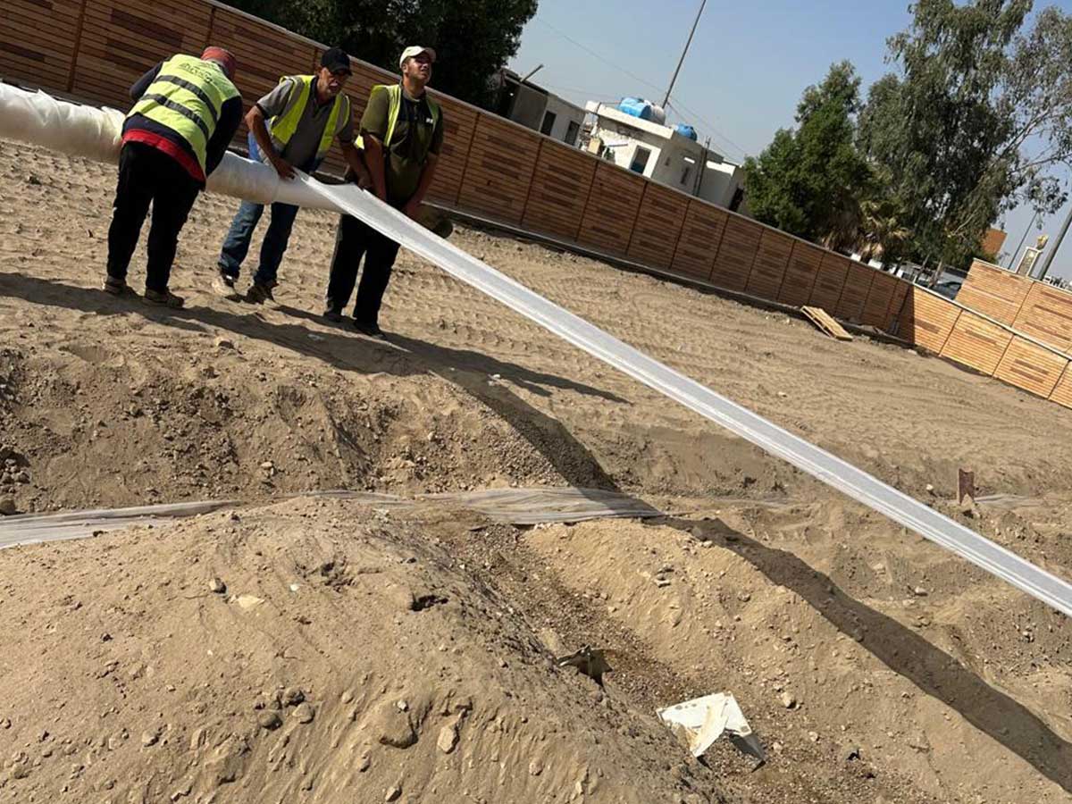 Smart drip and sprinkler networks with grading and French drains to conserve water and prevent flooding—designed with 4Green USA methods and adapted to Iraq’s climate and soils.